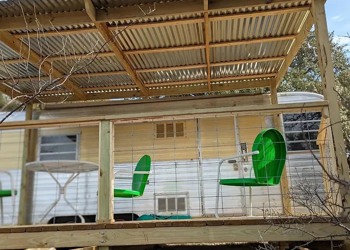 Situated amid the picturesque surroundings, Boulderdash "Stella" The Vintage Trailer offers a unique escape designed for those seeking both adventure and tranquility. Located just 95 km from San Antonio International Airport, this charming vintage trailer embraces the great outdoors while ensuring modern comforts are close at hand. Guests can unwind in an inviting outdoor dining area that boasts stunning views of the serene river, making it the perfect spot for morning coffee or evening meals.